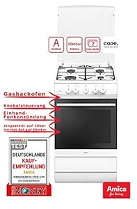 Amica SHGG 11559 W Herd-Kochfeld-Kombination / 58 L/Gaskochfeld auf Erdgas 20 m bar eingestellt, umrüstbar auf Flüssiggas 50 m bar/weiß