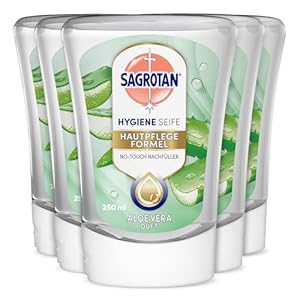 Nachfüllflüssigseife für automatische Seifenspender, verspricht zuverlässige Reinigung und Hautpflege. Sagrotan No-Touch Nachfüller verbindet Aloe-Vera-Duft mit einer feuchtigkeitsspendenden Formulierung für den Alltag. Lohnt sich die fünffache Packung für den eigenen Bedarf?