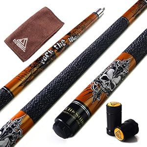 57 Zoll Länge und 21 Unzen Gewicht, Schaft aus nordamerikanischem Ahorn, M18-Gewinde. Mit 13 mm geschichteter Lederspitze, Carbonfaser-Ferrule und mitgeliefertem Tragetaschen-Set.