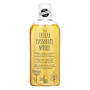 Flüssiges Massageöl mit Vanilleduft und 250 ml Inhalt. Enthält Soja- und Rizinusöl und ist für vielfältige Körperstellen angegeben.