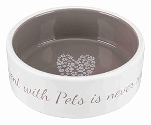 Kompakter Napf im verspielten Creme/Taupe-Design. Eignet sich für einzelne Portionen und enge Stellflächen.