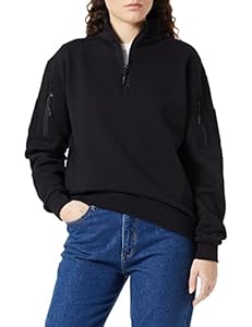 Mil-Tec Tactical Sweatshirt (Unisex) • Pullover mit Zipper • Sweater mit Kragen • Atmungsaktives Sweatshirt Damen & Herren • Warmer Pulli für Arbeit, Freizeit, Outdoor • Schwarz, L