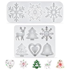 Zweiteiliges Set mit unterschiedlichen weihnachtlichen Motiven. Geeignet laut Beschreibung für Anwendungen wie Backen, Harzguss, Seifen und Pralinen.