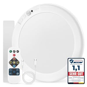 Combuh Led Akku Deckenleuchte Badezimmer mit Bewegungsmelder, Aufladbare Batteriebetriebene Lampe Keller Ohne Stromanschluss, Kabellose Deckenlampen mit Fernbedienung für Garage Flur, Rund 1 Stück