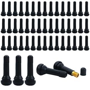 Standard TR414 Snap-In Ventile aus verschleißfestem Gummi und legiertem Schaft im 50er-Set. Universalgröße ist für Pkw, SUVs, Lkw und Motorräder ausgelegt und schwarze Staubkappen sind enthalten.