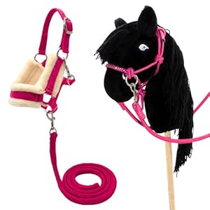 Halfter-Set für Hobby Horsing mit gepolsterter Unterlage und angehängtem Führstrick. Verstellbar im Genick für unterschiedliche Kopfformen.