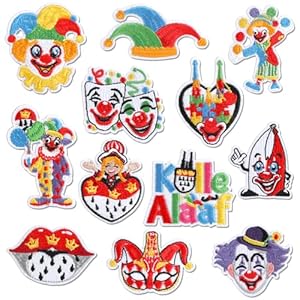Enthält zwölf kleine Bügelflicken mit regionalen Motiven wie Dom und Clown. Laut Hersteller farbecht.