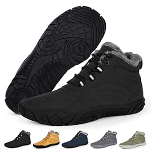 RUYI Barfußschuhe Winter Warm Gefütter Winterschuhe Damen Herren Barfussschuhe Wasserabweisend Traillaufschuhe mit rutschfest Sohle & Breiter Zehenbox